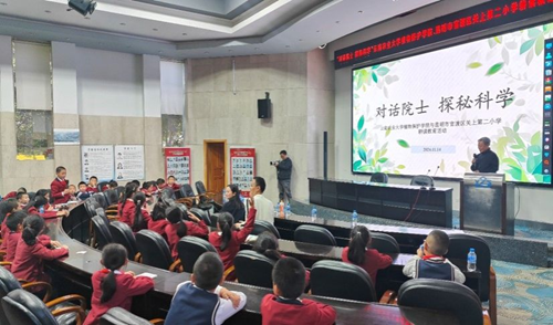 的“对话院士 探秘科学”耕读教育活动在学校举行。“时代楷模”朱有勇院士出席活动并同孩子们开心互动,院长蔡红主持活动。云南省青年科技工作者协会副会长、昆明市中小学科技创新协会会长胡磊、关二小校长王蜃淋、学院党委副书记李春艳、团学办有关人员、2024级学硕班学生代表及关二小师生代表共计120余人参加活动。